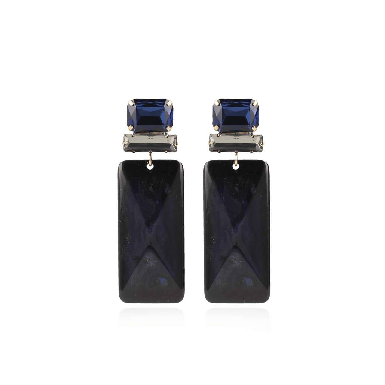 DONKER BLAUWE SWAROVSKI OORBELLEN YASMINE RESIN RECTANGLE L