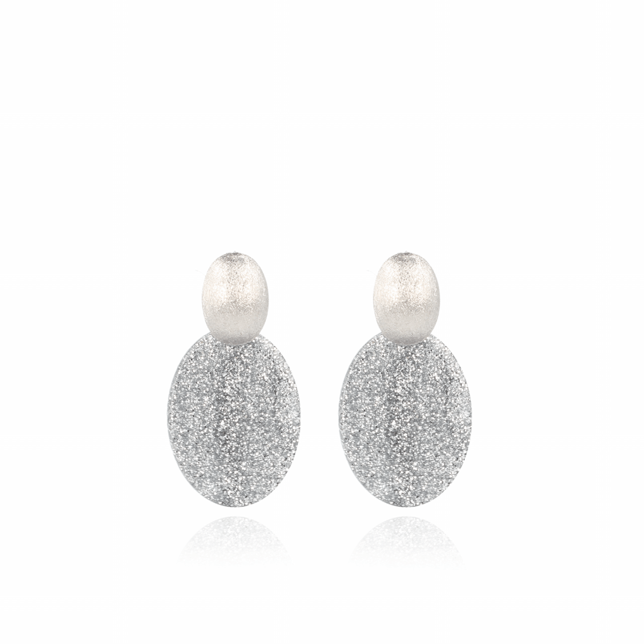 GLITTER LICHTGRIJZE HARS GESLOTEN OVAAL S OORBELLEN
