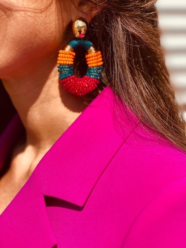 Deze oorbellen zijn samengesteld uit een combinatie van metallic draad en de glassberry glaskralen. Combineer deze met je favoriete zomerse outfit. Maak de oorbel af met een glanzende of geborstelde steker.