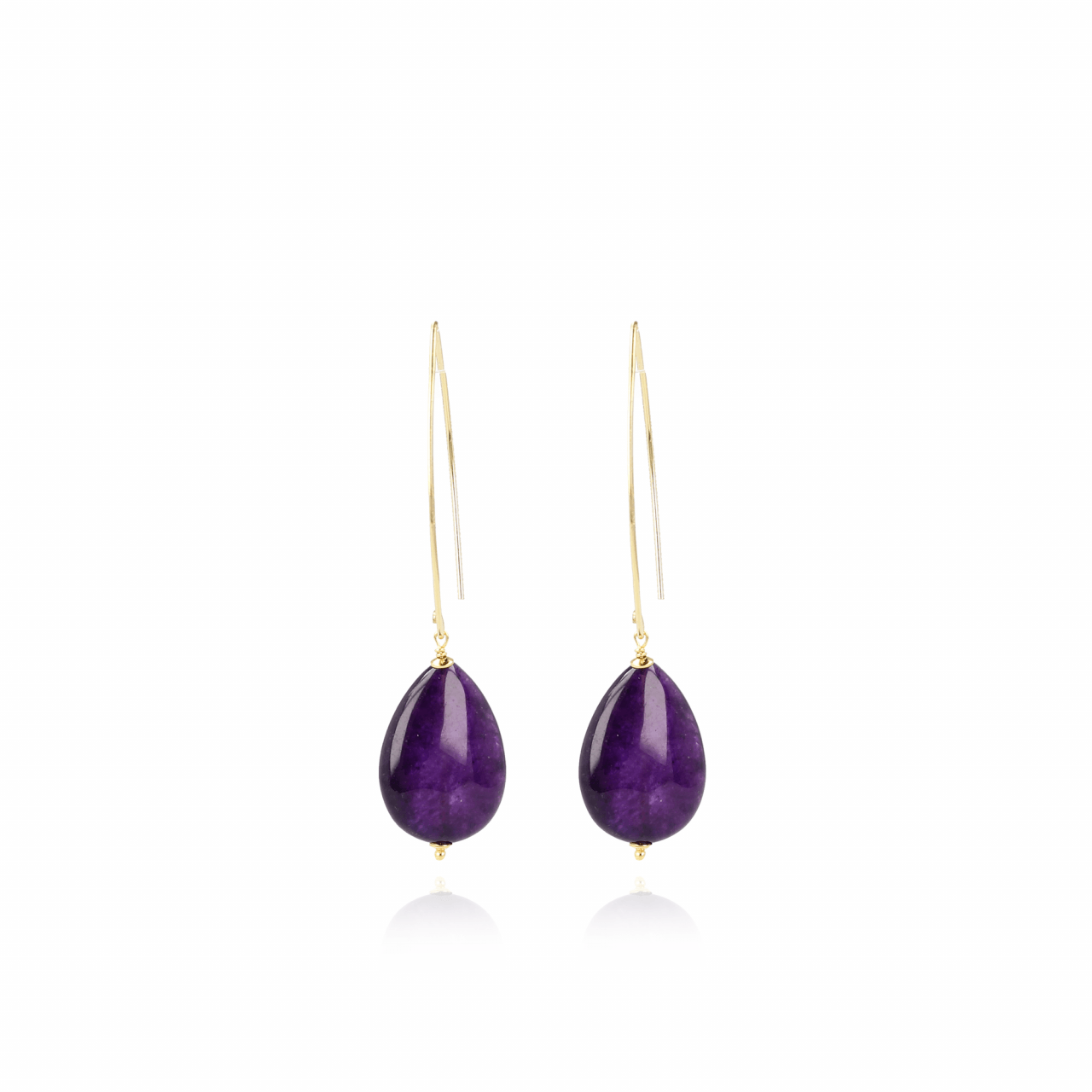 PAARSE OORBELLEN QUARTZ DRUPPEL M