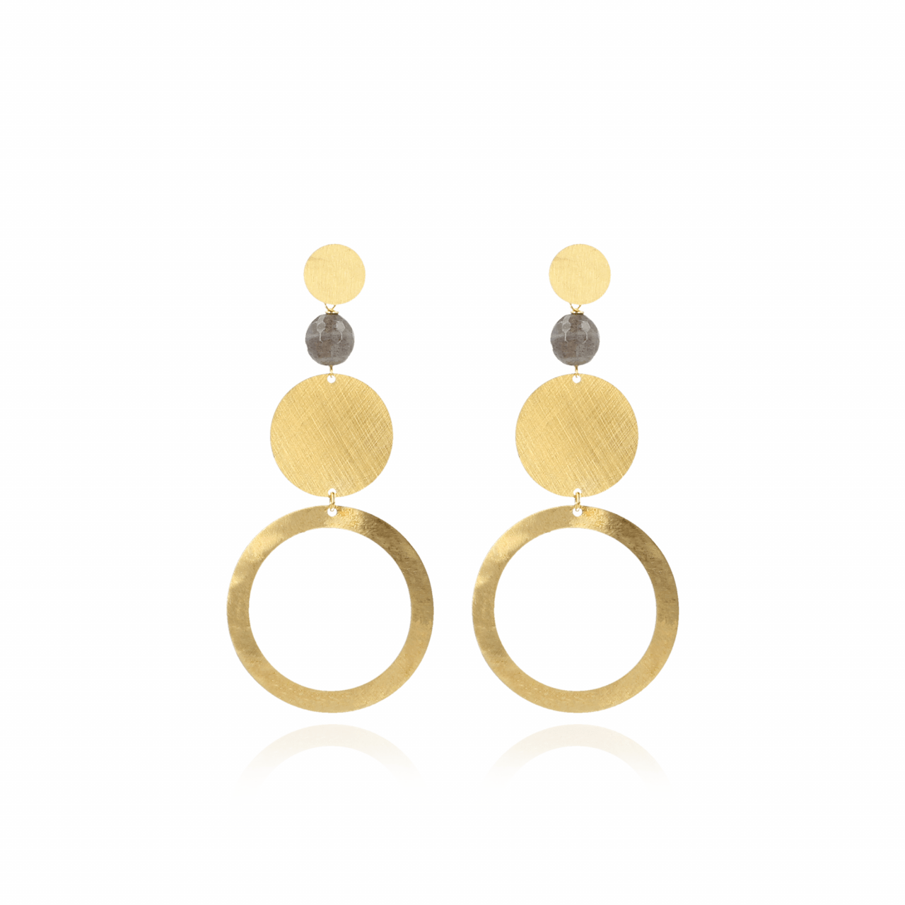 Deze unieke oorbellen zijn handgemaakt met de unieke Labradoriet steen in combinatie met de hammerd elementen. Deze oorbellen zijn echte eyecatchers en behoren dan ook zeker bij de nieuwe spring summer collectie.