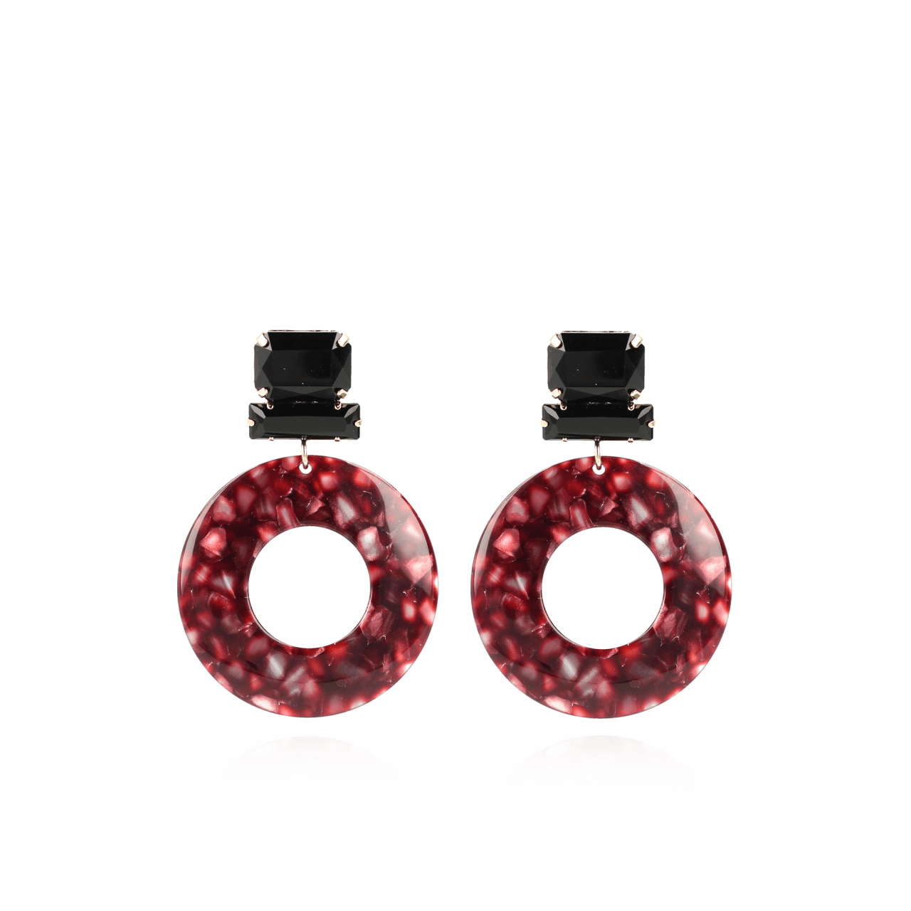 RESIN OPEN CIRCLE L BLENDED AUBERGINE SWAROVSKI BLACK OORBELLEN