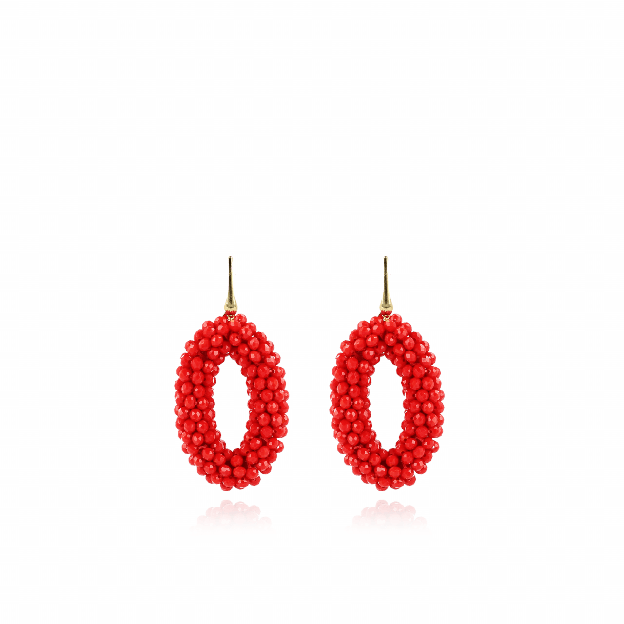RODE OORBELLEN DESI MAXI GLASSBERRY OVAAL M