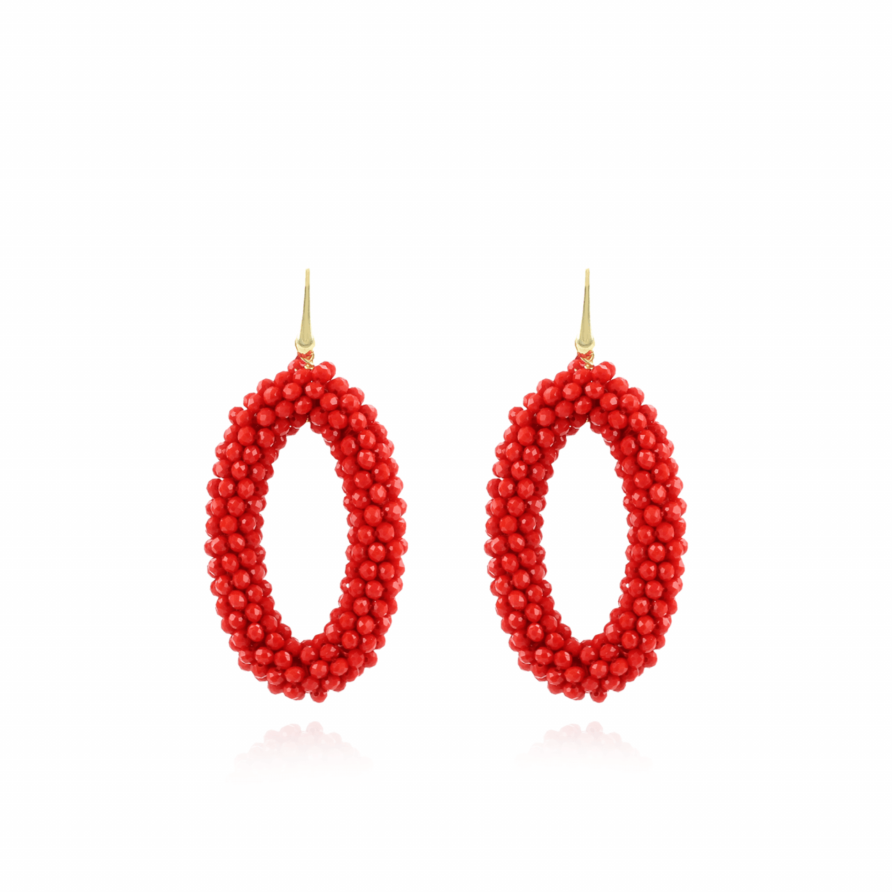 RODE OORBELLEN MAXI GLASSBERRY OVAAL L