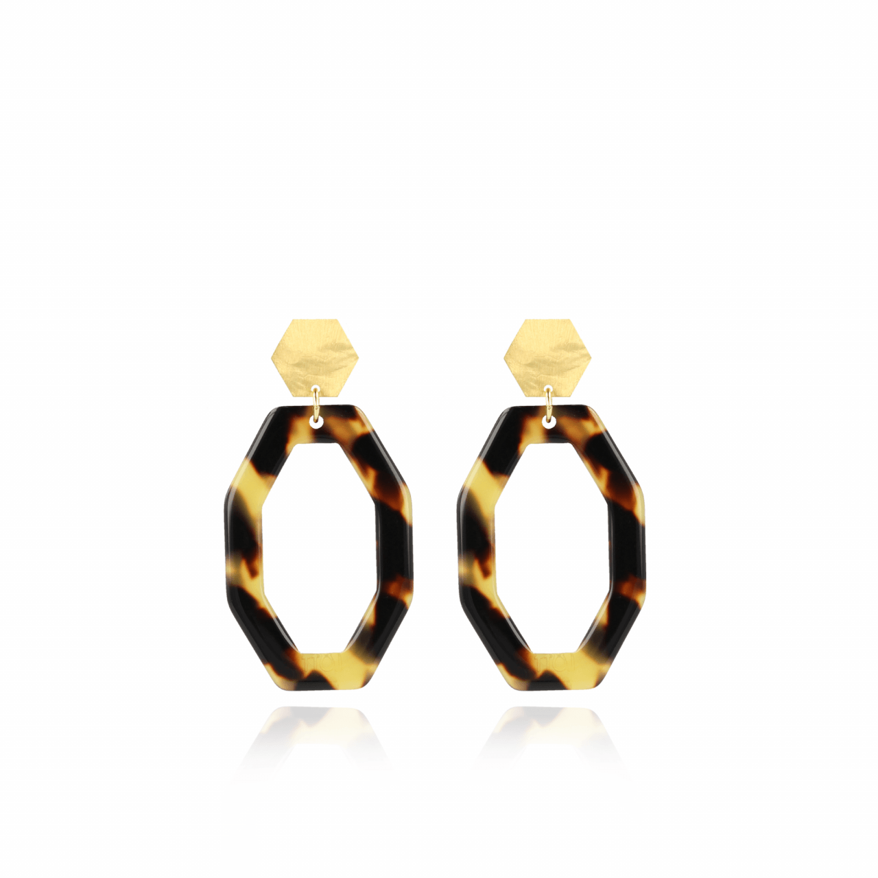 TURTOISE OORBELLEN CHIARA RESIN HEXAGON OPEN OVAAL S