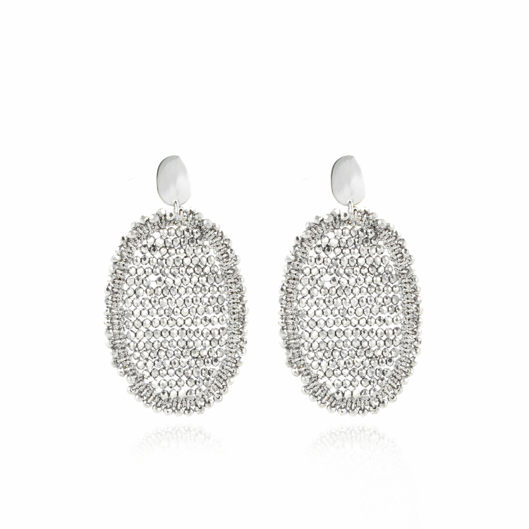 Deze silk oorbellen zijn met hun unieke uiterlijk afgewerkt met metalic zijden draad in combinatie met glaskralen. Deze oorbellen zullen je laten stralen!