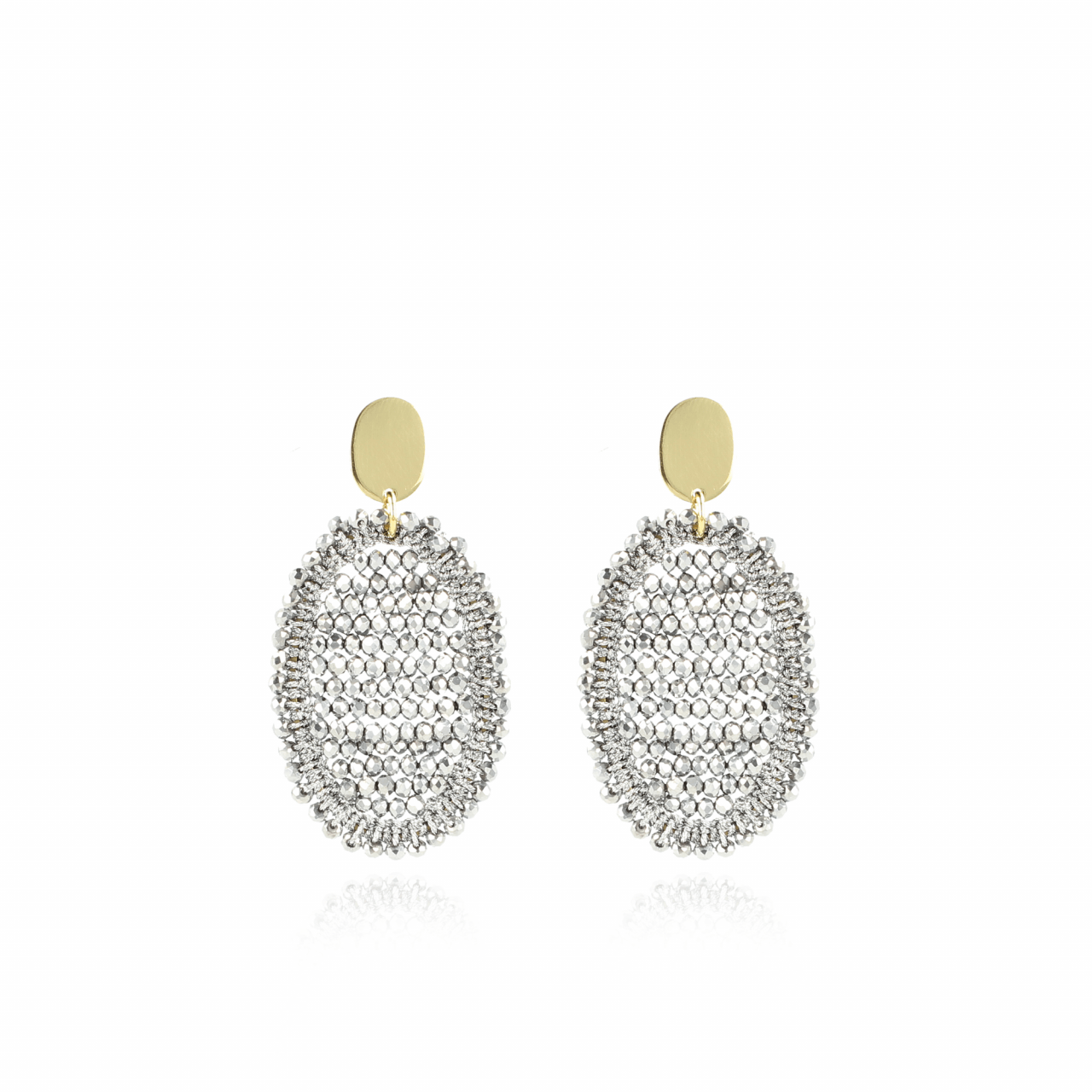 ZILVEREN OORBELLEN METALLIC ZIJDE OVAAL KRAAL S
