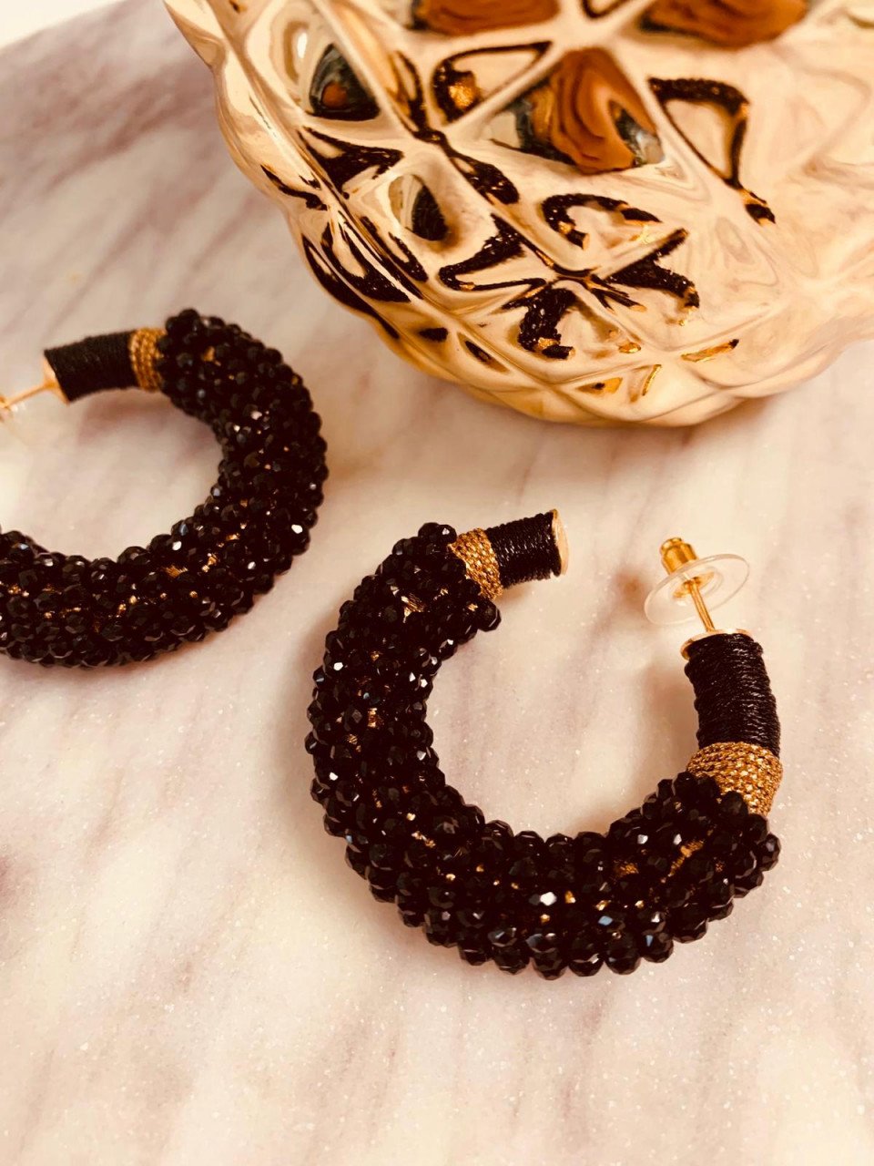 Deze zwarte met gouden glassberry creole silk oorbellen mogen niet ontbreken in je sieradencollectie. Deze musthaves zijn dan ook perfect voor een avondje uit. Combineer je ze chique of casual, jij straalt hoe dan ook.